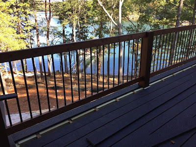 We've done a tremendous amount of homework relating to various aspects of the house build, and narrowing it down to one thing would be tricky. Most recently might be the deck railing. We had something in mind, but after 'doing our homework' we made a change to the original plan and we're so happy with the result. Again I don't have a great pic, because they're wrapping up the exterior projects today and tomorrow, but here's a sneak peek-