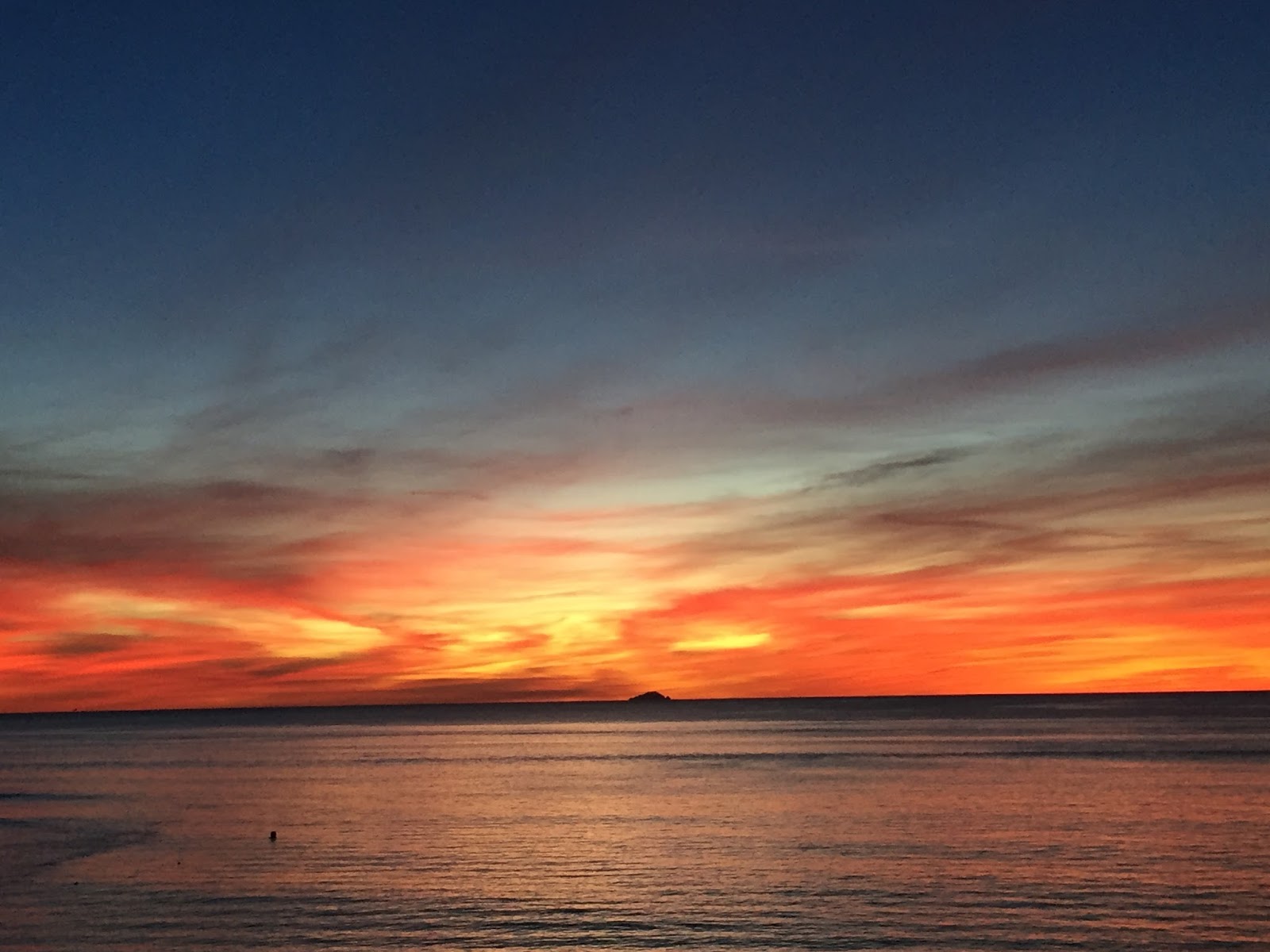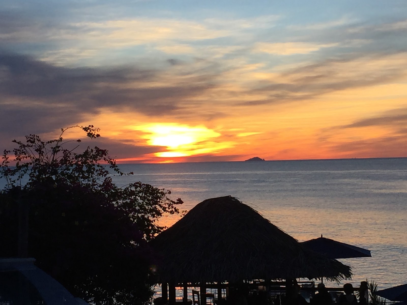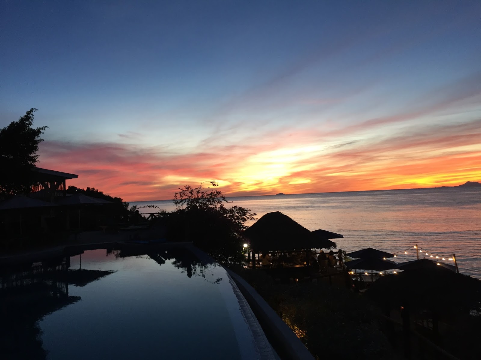 After lunch we relocated to the infinity pool, also beside the sea, and there we remained until the sun set spectacularly before our eyes at about 6 PM every night.