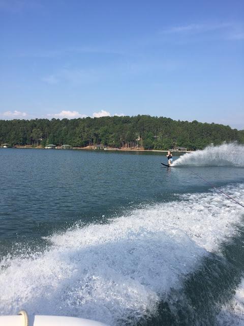 He and hubs both love to water ski so there was lots of water skiing. I love it when someone else is here to pull hubs so he can ski, tie up lines, and act as dock boy when we dock. The weather cooperated and we spent most of the weekend on the water or planted on one of the small beaches on various islands in the lake.