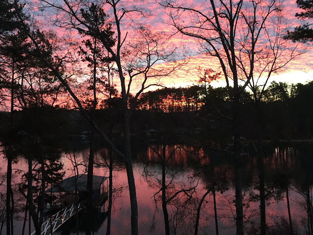 We have a picture perfect view of the sunrise from our back porch which is where I head first thing every morning. One day last week hubs suggested we get up extra early and take the boat out so we could watch the sun come up from the middle of the lake.