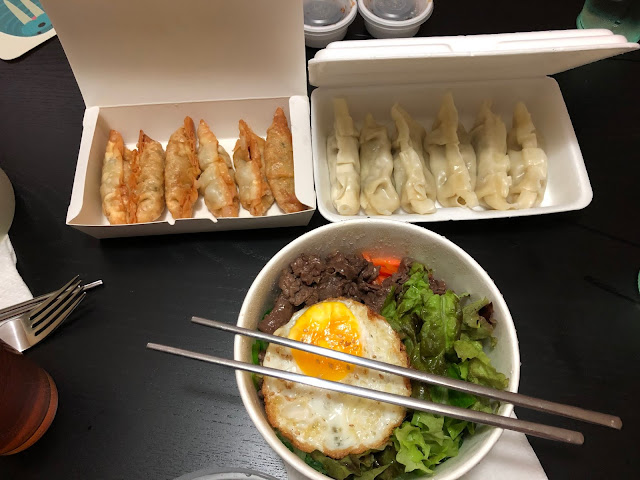 Hubs had soba noodles and sushi and we are fans of the food here. Also the presentation. Nobody slings a plate down in front of you, sloshes tea into a saucer so it drips while you sip, or rolls their eyes waiting on you to decide what you'd like to order.